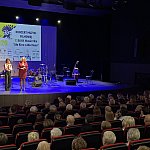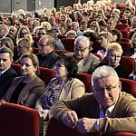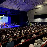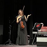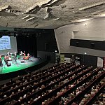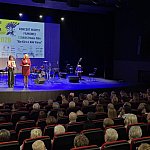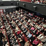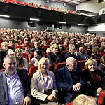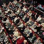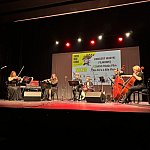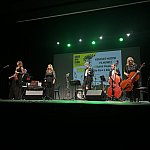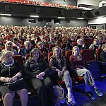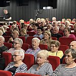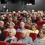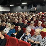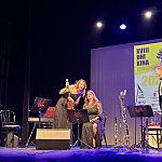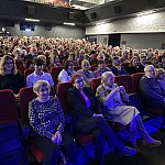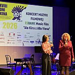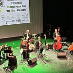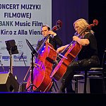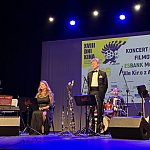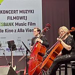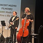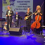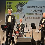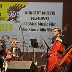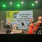 Sala widowiskowa Miejski Dom Kultury w Radomsku wypełniona publicznością podczas koncertu muzyki filmowej w ramach XVIII Dni Kina. Na scenie zespół Alla Vienna prezentuje znane motywy filmowe i serialowe. W programie znalazły się zarówno polskie kompozycje, jak i światowe przeboje. W foyer MDK dostępna jest także wystawa „Zrób sobie kadr: Reinterpretacje Zamachowskiego”.